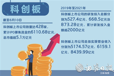 数据显示,截至6月10日,科创板上市公司数量达428家,累计IPO募集资金约6110.68亿元,总市值超5.1万亿元。