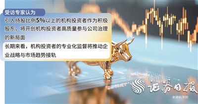 机构投资者积极参与上市公司治理,将有助于提高上市公司治理水平。完善机构投资者参与上市公司治理配套机制,推动与上市公司建立长期良性互动,是提高上市公司治理水平的重要一环。引入持股比例5%以上的机构投资者作为积极股东,将开创机构投资者高质量参与公司治理的新局面。