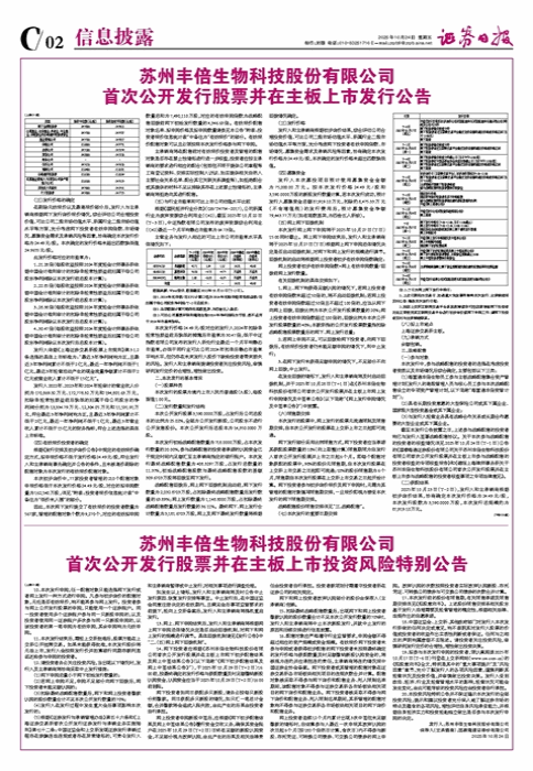 • 苏州丰倍生物科技股份有限公司 首次公开发行股票并在主板上市投资风险特别公告(上接C1版)