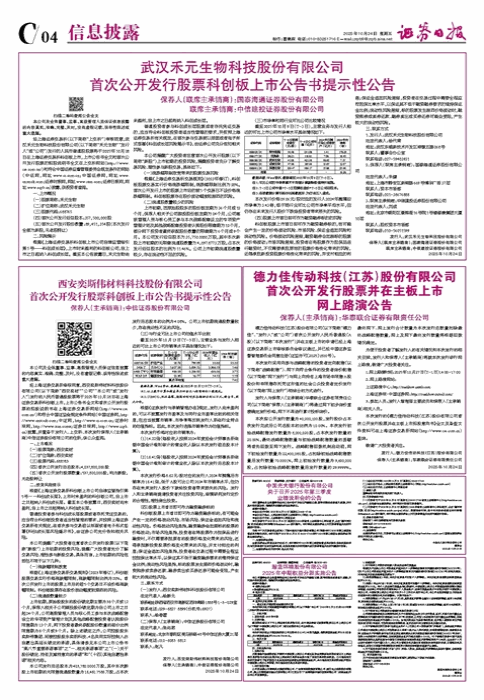 • 武汉禾元生物科技股份有限公司 首次公开发行股票科创板上市公告书提示性公告