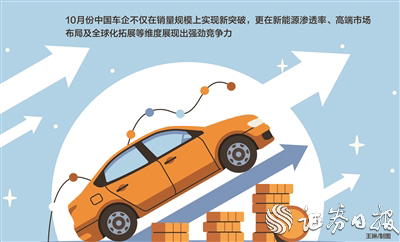 黄河科技学院客座教授张翔在接受《证券日报》记者采访时表示,从10月份整体汽车销量表现来看,中国车企已形成“头部集团稳增长、新势力快突破”的发展格局,新能源与全球化成为两大核心增长引擎。随着技术创新持续深化、产品矩阵不断完善,中国汽车产业正加速从“规模扩张”向“质量提升”转型,在全球汽车市场的竞争力将进一步增强。