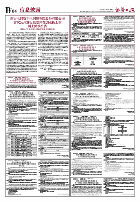 • 南方电网数字电网研究院股份有限公司 首次公开发行股票并在创业板上市 网上路演公告