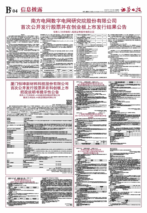 • 南方电网数字电网研究院股份有限公司 首次公开发行股票并在创业板上市发行结果公告