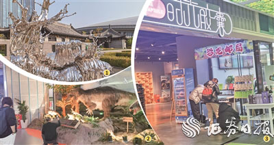 图①沈阳K11商场空中雕塑公园 图②中兴商业恐龙博物馆 图③中兴商业时光胶囊恐龙衍生品谷子店 李勇/摄