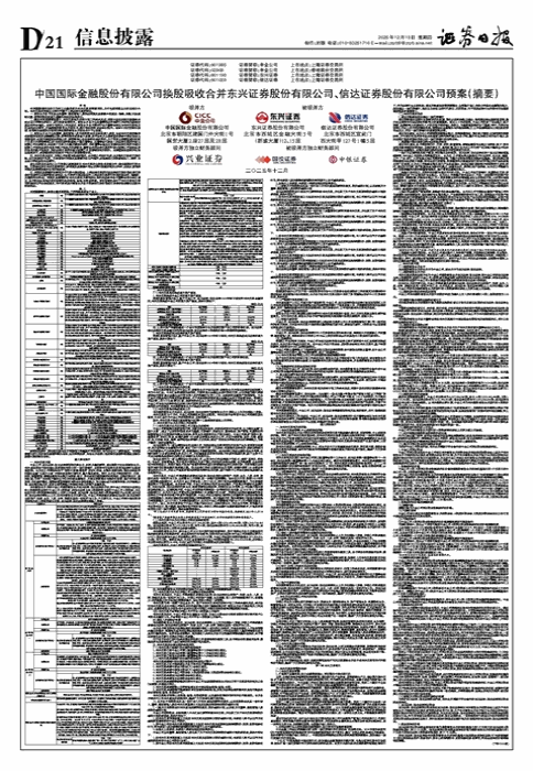 • 中国国际金融股份有限公司换股吸收合并东兴证券股份有限公司、信达证券股份有限公司预案(摘要)(下转D22版)