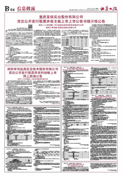 • 重庆至信实业股份有限公司 首次公开发行股票并在主板上市上市公告书提示性公告