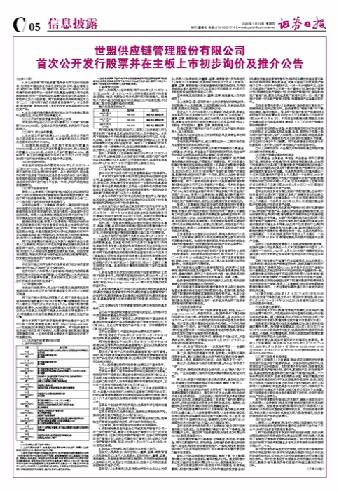 • (上接C4版)世盟供应链管理股份有限公司 首次公开发行股票并在主板上市初步询价及推介公告(下转C6版)