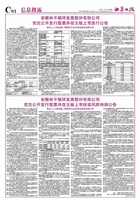 • 安徽林平循环发展股份有限公司 首次公开发行股票并在主板上市发行公告(下转C2版)