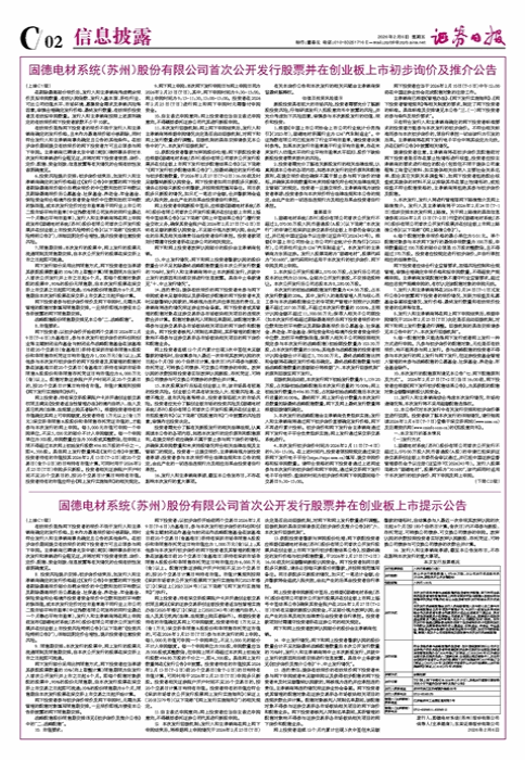 • (上接C1版) 固德电材系统(苏州)股份有限公司首次公开发行股票并在创业板上市初步询价及推介公告(下转C3版)