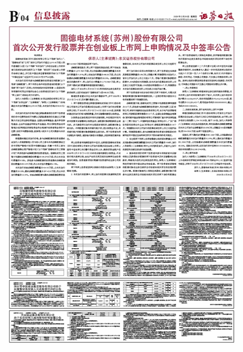 固德电材系统(苏州)股份有限公司 首次公开发行股票并在创业板上市网上申购情况及中签率公告