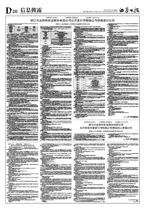 • 浙江天台祥和实业股份有限公司公开发行可转换公司债券发行公告