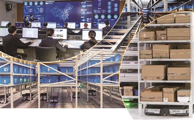 图①九州通全国物流指挥调度中心 图②穿梭车库