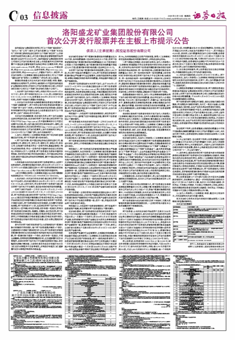 • 洛阳盛龙矿业集团股份有限公司 首次公开发行股票并在主板上市提示公告