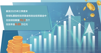 作为连接创新资本与科技企业的关键纽带,私募股权和创投基金在支持中小科创企业成长中发挥着不可替代的作用。数据显示,截至2025年三季度末,存续私募股权投资基金和创业投资基金中,在投项目数量15.3万个,在投本金9.05万亿元。创业投资基金在投项目中,投向高新技术企业数量和在投本金占比分别为49.94%和53.96%;投向初创科技型企业数量和在投本金占比分别为32.34%和20.78%,体现出创业投资投早、投小、孵化创新的重要作用。
