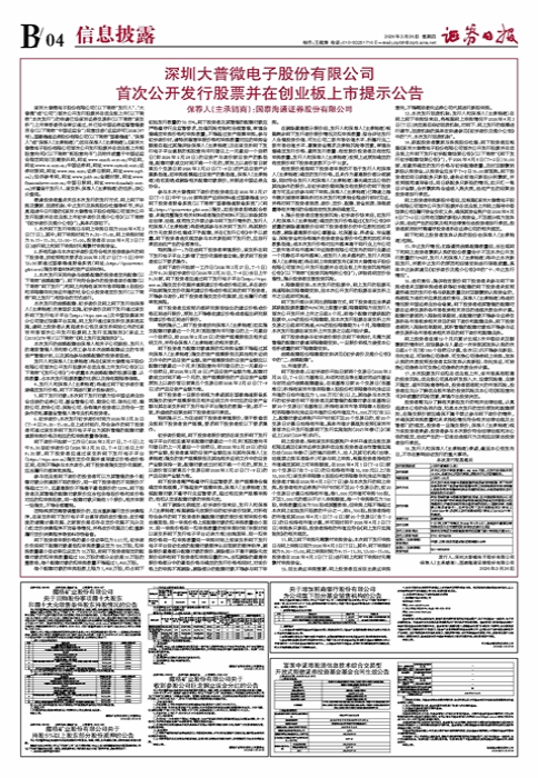 • 深圳大普微电子股份有限公司 首次公开发行股票并在创业板上市提示公告