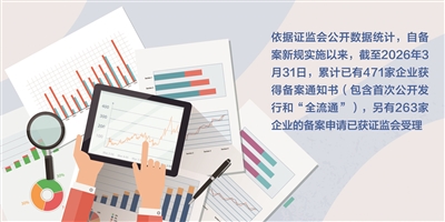 支持企业利用境外资本市场规范发展,坚持落实“放管服”改革要求,将许可管理改为备案管理。《证券日报》记者依据证监会公开数据统计,自备案新规实施以来,截至2026年3月31日,累计已有734家企业提交备案申请。其中,471家企业获得备案通知书(包含首次公开发行和“全流通”),另有263家企业的备案申请已获证监会受理。