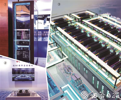 图①英维克液冷机柜图②鲲鹏高性能计算系统图③华为数据中心沙盘 贾丽/摄