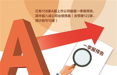 截至4月17日《证券日报》记者发稿时,已有158家A股上市公司披露一季报预告,其中超八成公司业绩预喜(含预增122家、预计扭亏10家)。