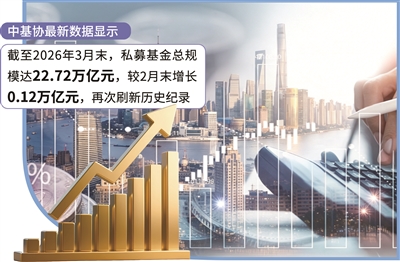 4月20日,中国证券投资基金业协会(简称“中基协”)发布最新私募基金数据显示,截至2026年3月末,私募基金总规模达22.72万亿元,较2月末增长0.12万亿元,再次刷新历史纪录。